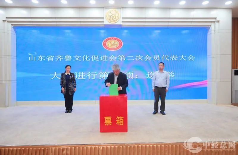 其次舉行了山東省齊魯文化促進會第二屆理事會換屆選舉。大會通過無記名投票方式,選舉產生了山東省齊魯文化促進會第二屆理事會會長、監事長、副會長、秘書長、常務理事、理事和監事。大會選舉山東省齊魯文化促進會第一屆理事會執行會長崔東方為會長,山東省明日之星教育基金會發起人張明勇為監事長,山東師范大學黨委副書記萬光俠為副會長,長城梅地亞文化產業集團公司董事長王百忠為常務副會長,山東國晟小額貸款有限公司董事長孫日福為常務副會長,孟子研究院黨委書記、院長、研究員陳曉霞、山東京魯律師事務所黨支部書記主任郝紀勇、山東社會科學院歷史所所長劉良海、孔子研究院副院長袁汝旭等為副會長,秘書長由會長崔東方兼任,選舉產生了常務理事23名,理事51名,監事2名。