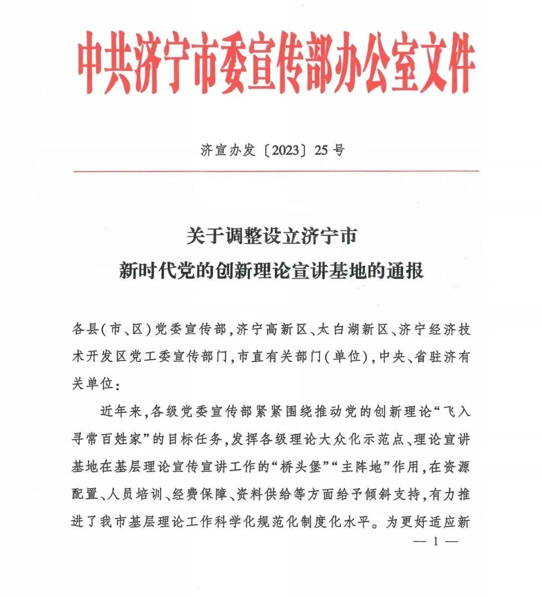 近日,中共濟寧市委宣傳部辦公室發布《關于調整設立濟寧市新時代黨的創新理論宣講基地的通報》,對100個市級新時代黨的創新理論宣講基地予以公布。其中,孟子研究院獲評“濟寧市新時代創新理論宣講基地”。