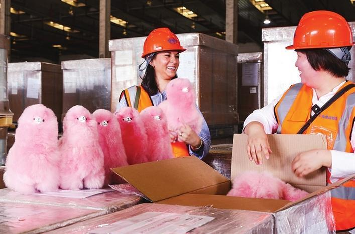隨著第七屆進(jìn)博會(huì)開幕在即,眾多海外參展商品陸續(xù)抵達(dá)上海。圖為秘魯“溫暖駝”聯(lián)合創(chuàng)始人伊薩貝爾·賽阿(左)和工作人員在倉庫內(nèi)查驗(yàn)貨品。新華社記者 方喆攝