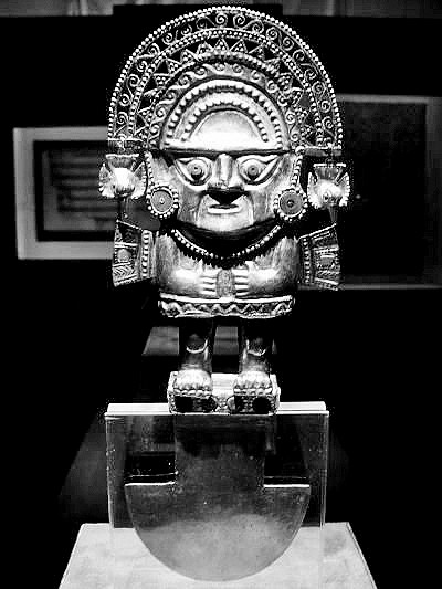 值得一提的是,除了印加文化,在秘魯的古文明中,黃金面具在西坎文化中出現最頻繁。該文化的黃金面具以精致的工藝著稱,通常具有神秘的面部特征,如大眼睛、抽象的面部表情和裝飾性的耳環或頭飾,主要出現在高等級的墓葬和宗教遺址中。它們不僅代表地位和權力,也被認為具有護佑靈魂的力量。