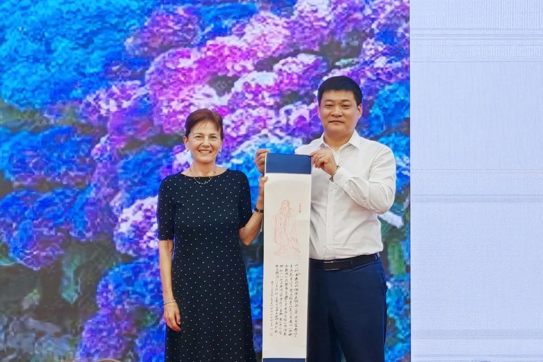孔德立向馬利亞·馬內(nèi)利贈(zèng)送孔子像
