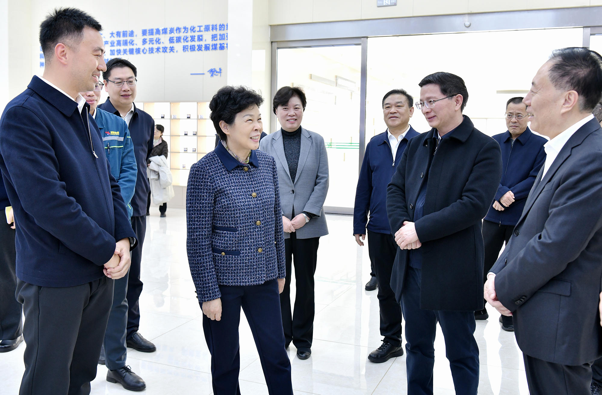 葛慧君來到恒信集團智慧中心,詳細了解企業煤化工全流程數字孿生平臺賦能生產全鏈條情況,聽取企業技術研發、生產銷售、產業鏈延伸、數字化轉型、在建項目等情況介紹。她指出,要以科技創新為引領,把綠色發展理念貫穿于企業發展全過程,深化數智化轉型和技術改造,持續延鏈補鏈強鏈,提高產品科技含量和附加值,推動產業向高端化、智能化、綠色化、融合化邁進。